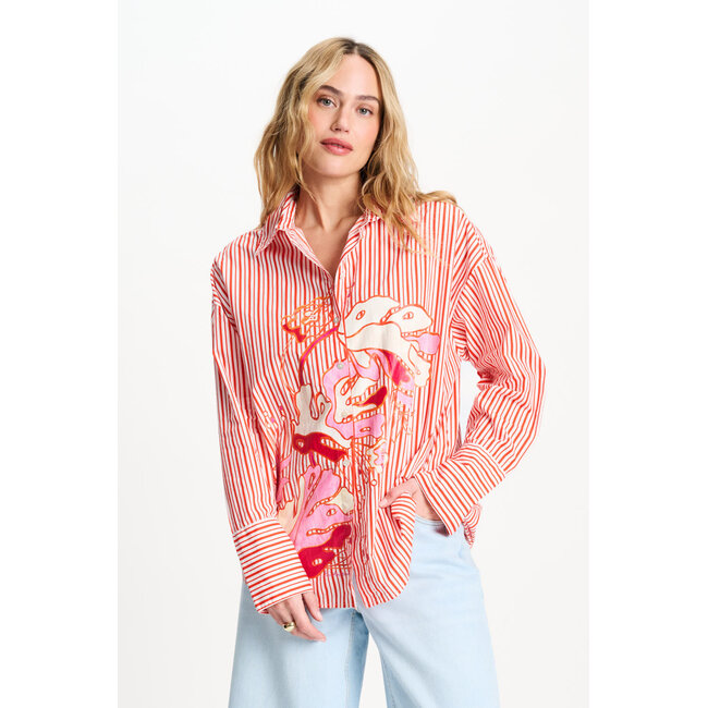 POM BLOUSE - Poplin Striped Orange Multi colour